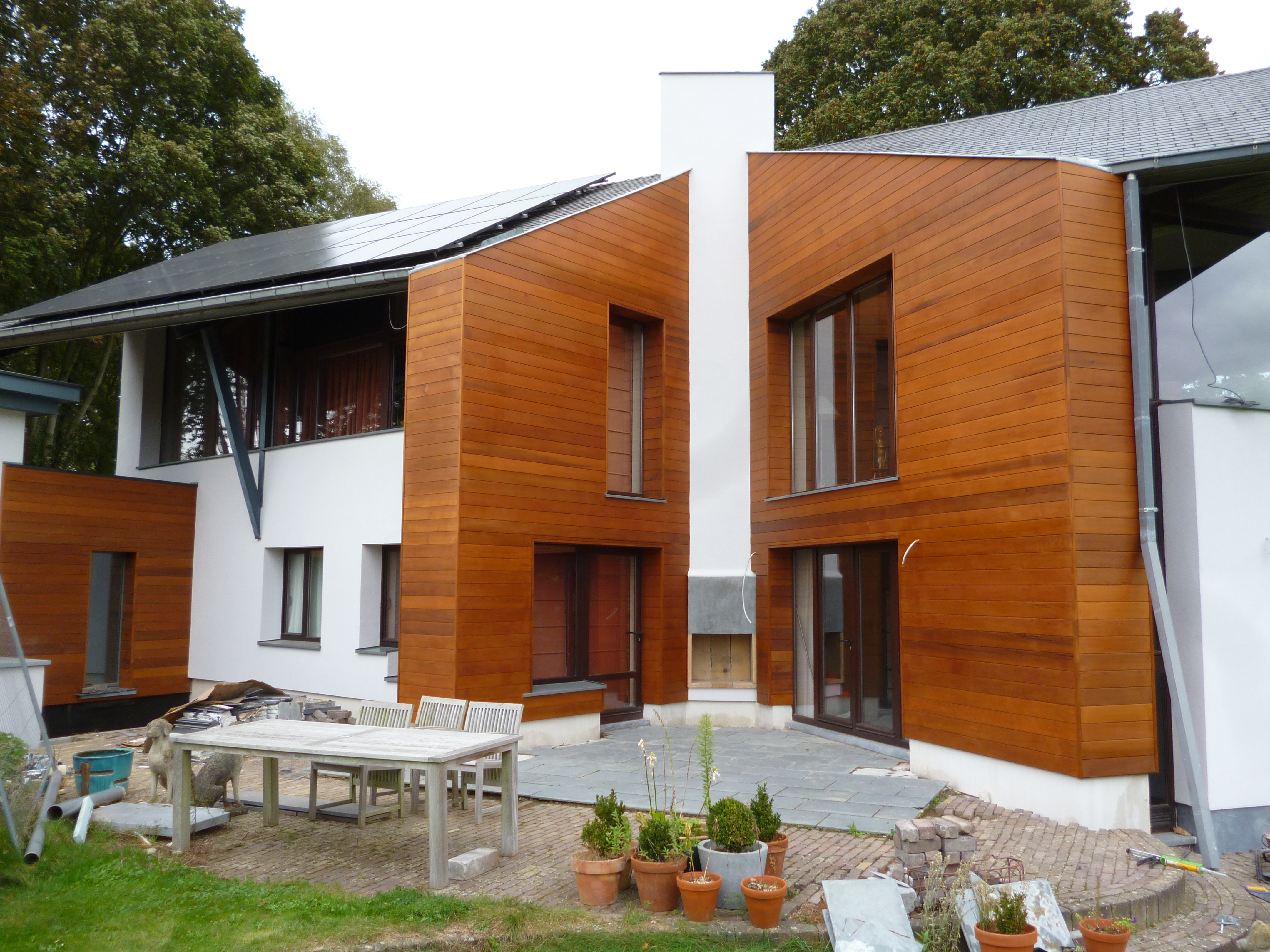 Le chantier d’une rénovation importante dans la province du Brabant wallon touche à sa fin. La transformation a été appliquée au volume secondaire de l’habitation. Une toiture verte extensive, des panneaux solaires ainsi qu’une isolation importante ont été mis en oeuvre. Les occupants bénéficient à présent d’une habitation confortable de tous points de vue.